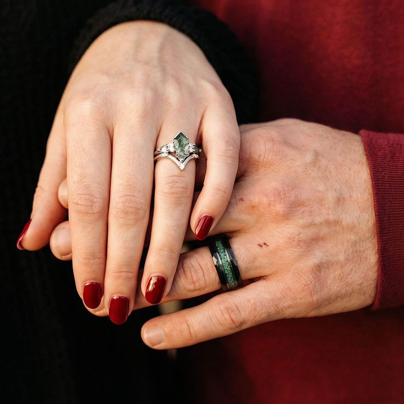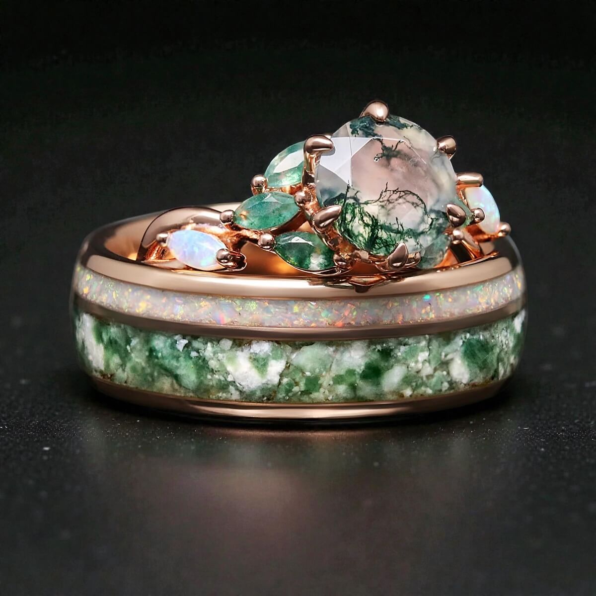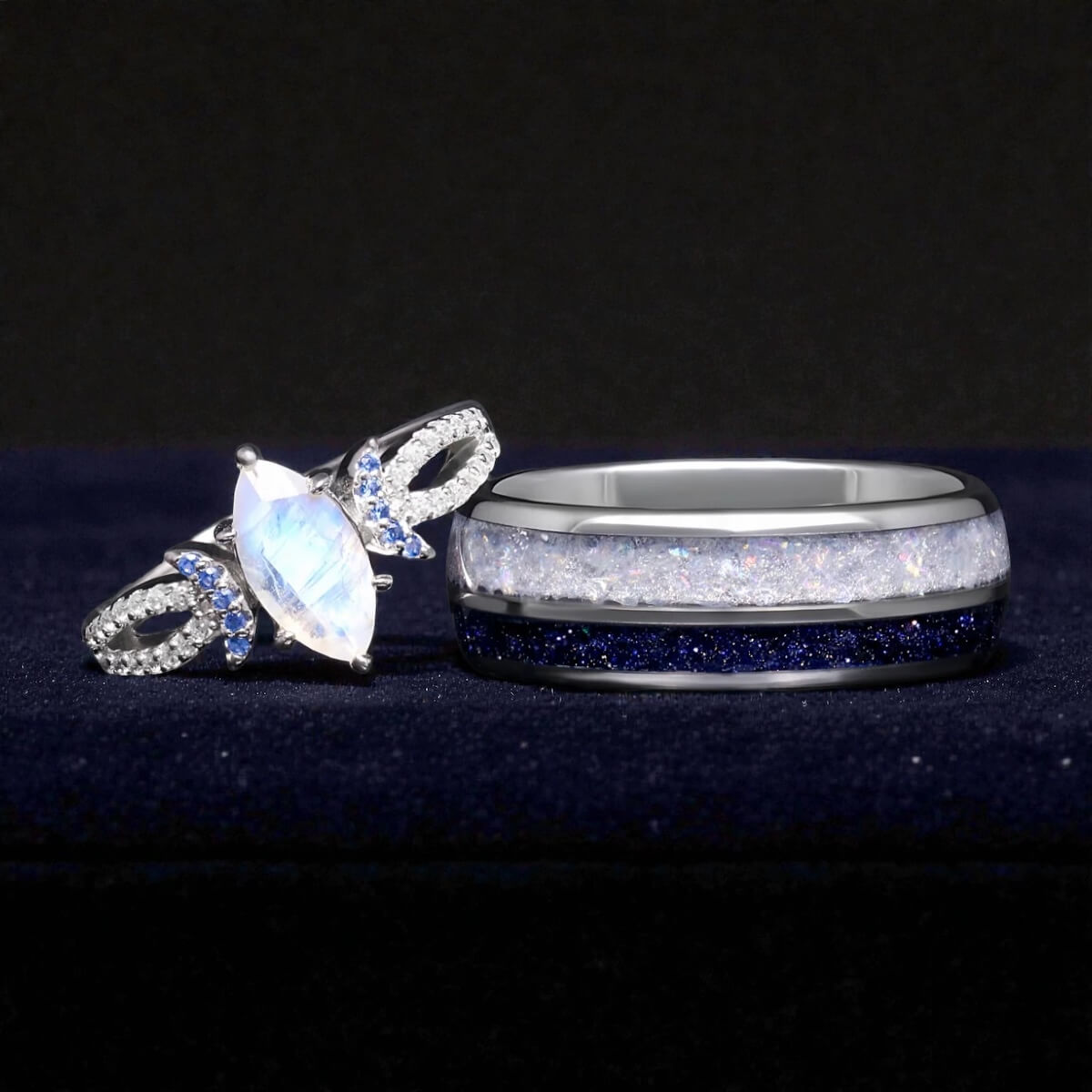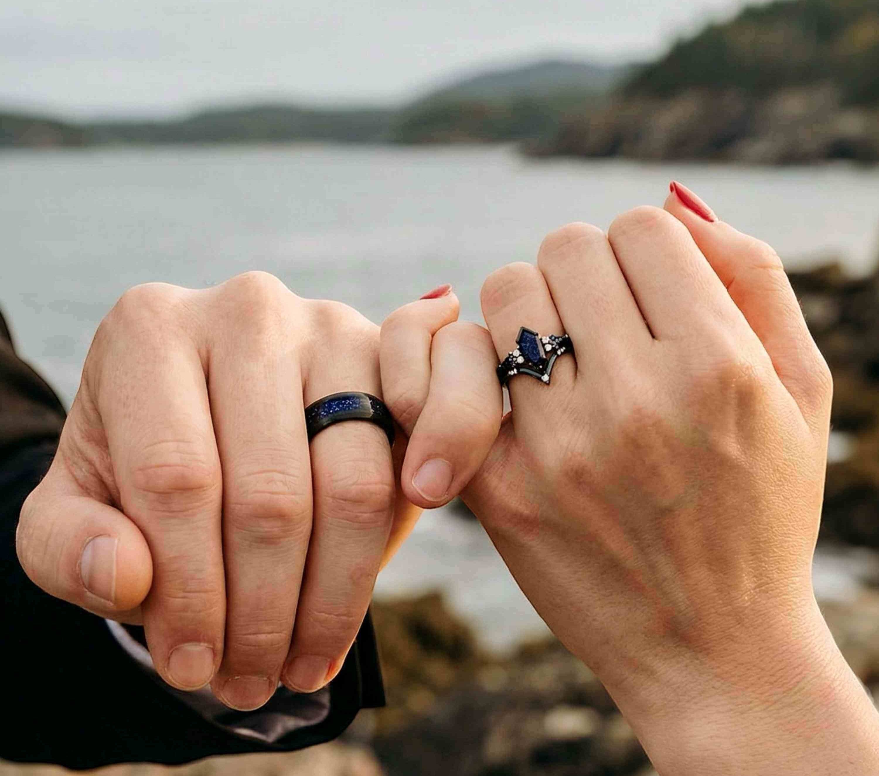 At Foreverings Jewelry, we create rings for couples who want something more personal than traditional bands. From space-inspired nebula designs to nature-inspired stones, each set is thoughtfully crafted and engraved to tell your story.