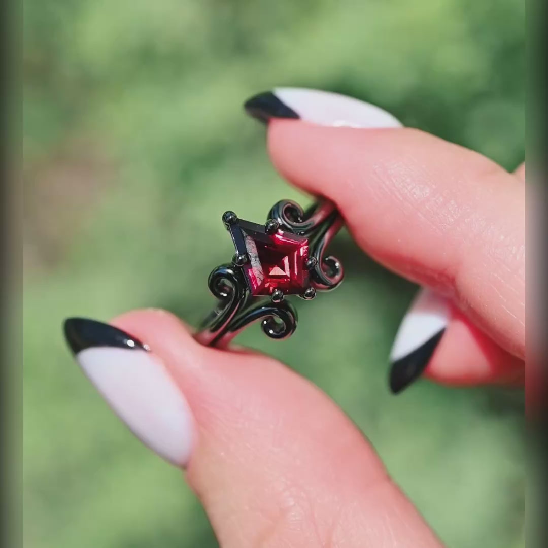 Enla Garnet & Black Fire Opal Wedding Ring in Black - Womens Inlay Band