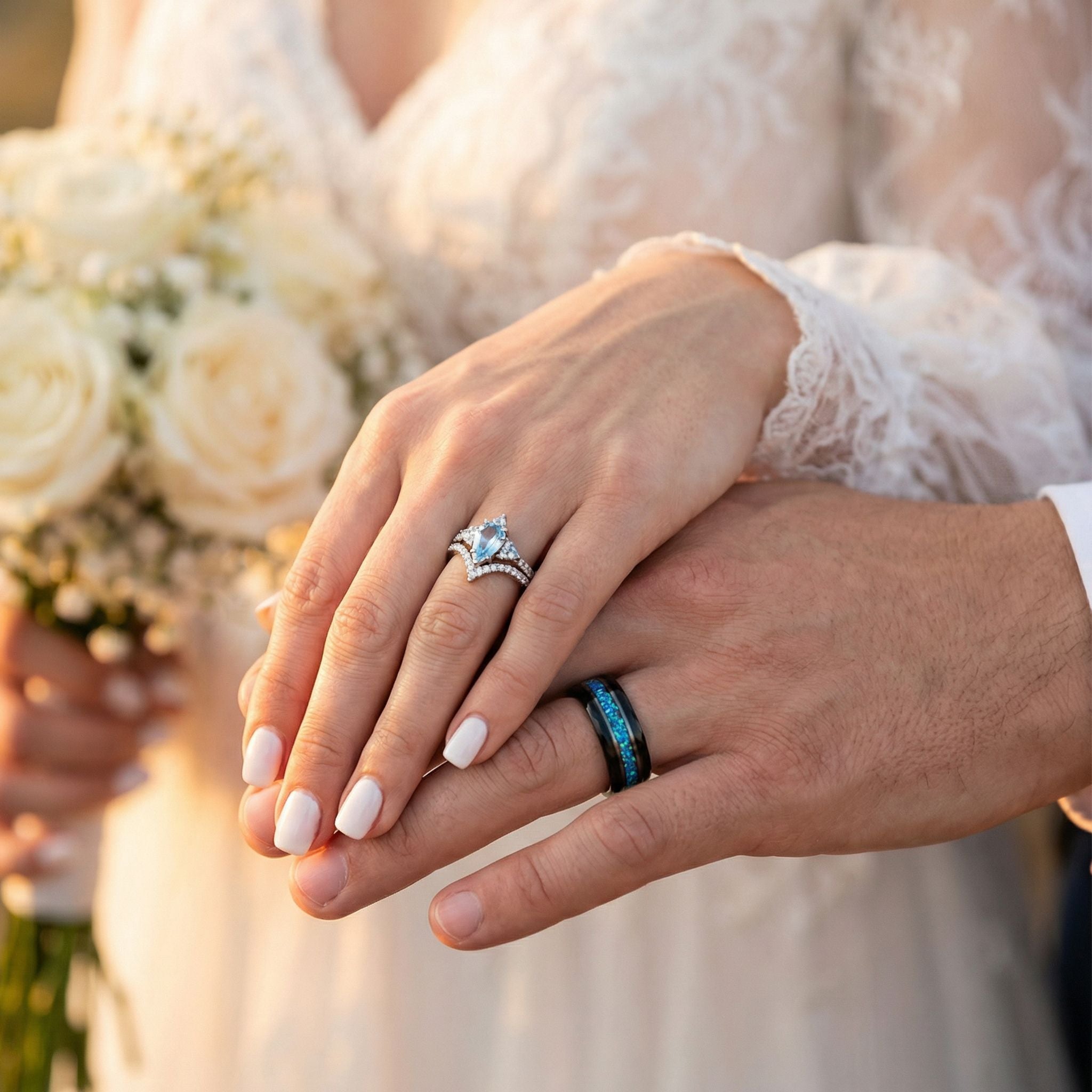 A wedding band set are for matching couples who want a more durable, everyday option. With no raised stones, there’s less risk of snagging or stones coming loose - great for hands-on jobs like restaurant work, healthcare, trades, and gym life. They’re also typically more comfortable for daily wear and easy to maintain.