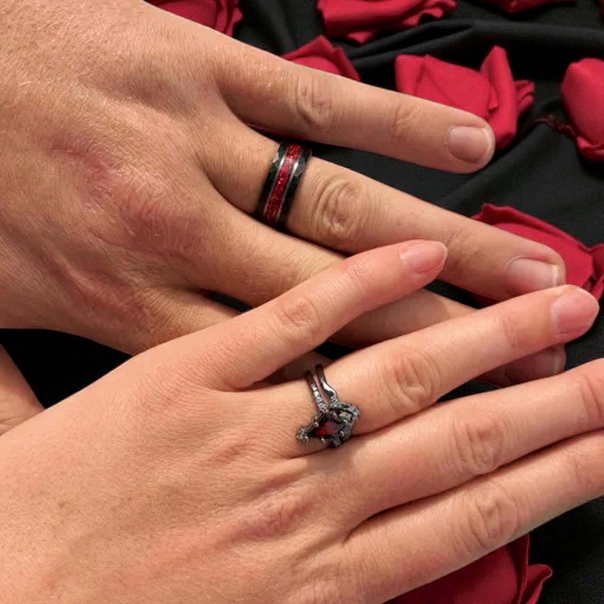 These are the perfect matching wedding bands. We wanted alternative rings for our wedding, and they look even better in person. Great quality, super comfortable, and gorgeous!