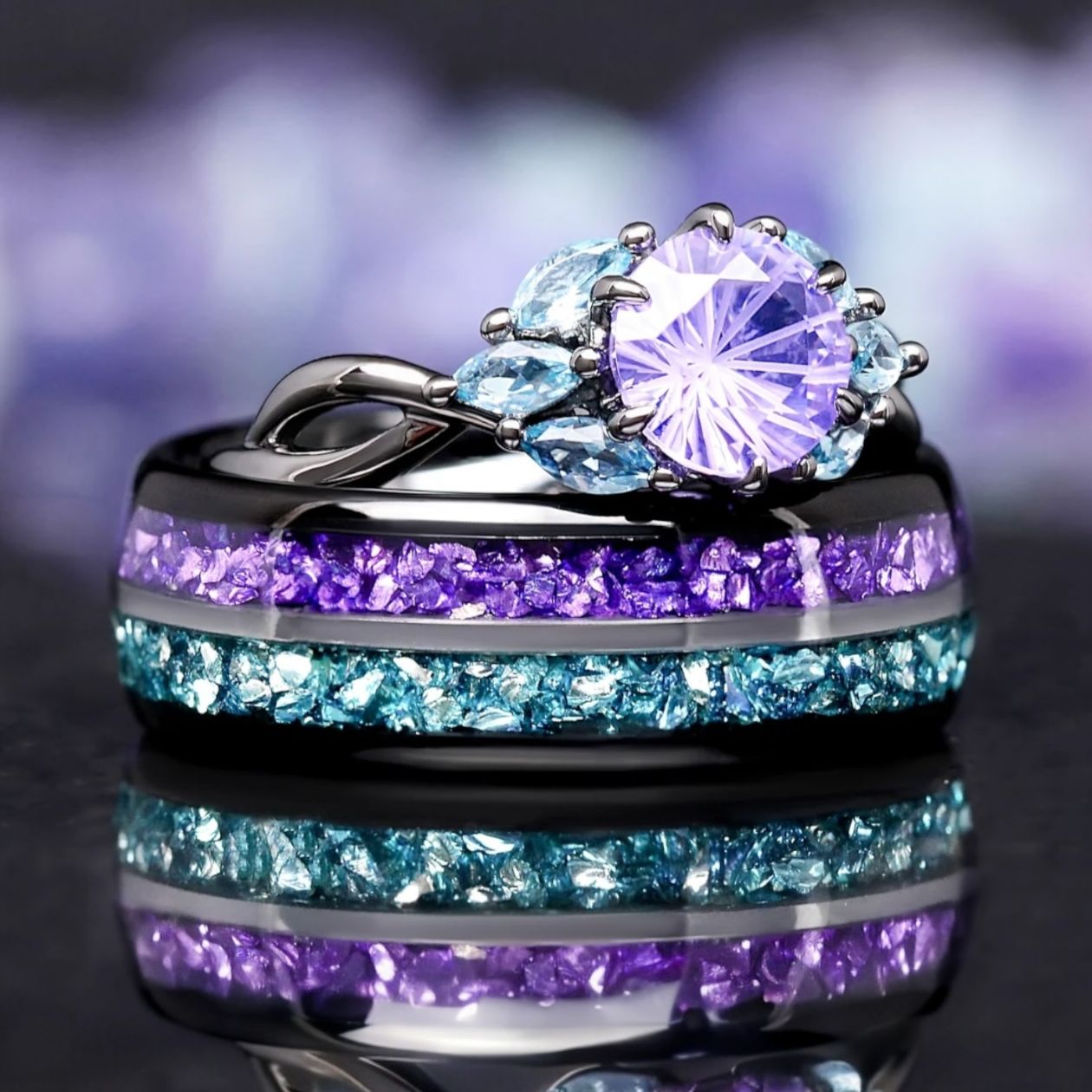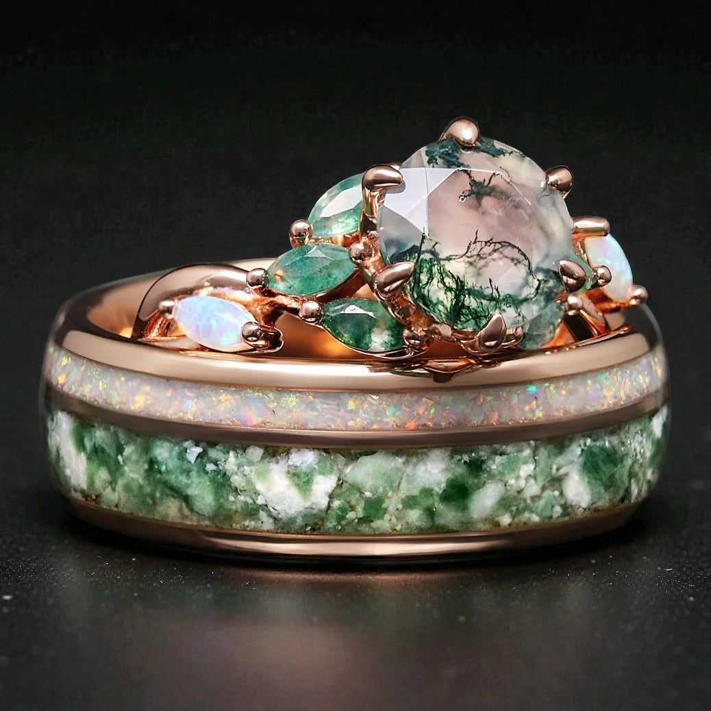 Couples ring sets are matching rings for couples - a coordinated his and hers pair designed to look connected when worn together.