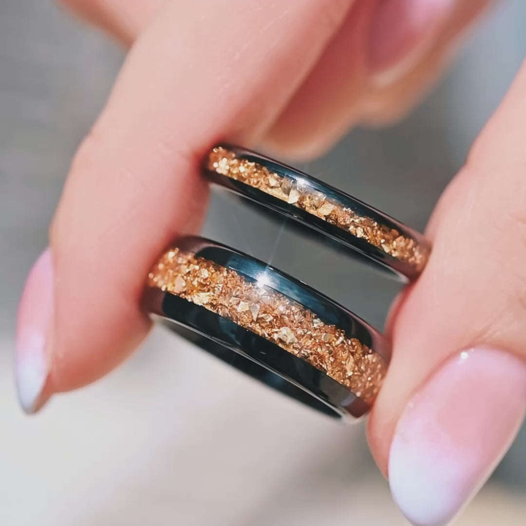 ►This 4mm tungsten band is a stunning piece that brings together elegance and strength, perfect for marking life’s special moments. The ring features a captivating inlay of crushed citrine glass stones, their warm glow beautifully contrasted against the sleek black tungsten setting. Designed with a polished dome shape and comfort fit, it offers a sophisticated look and all-day wearability. Whether you’re celebrating a wedding, making a heartfelt promise, or commemorating an anniversary, this versatile piece serves as a meaningful symbol of your commitment. Personalize it with engraving for a truly unique touch, making it an ideal choice for both women and men who value timeless style.