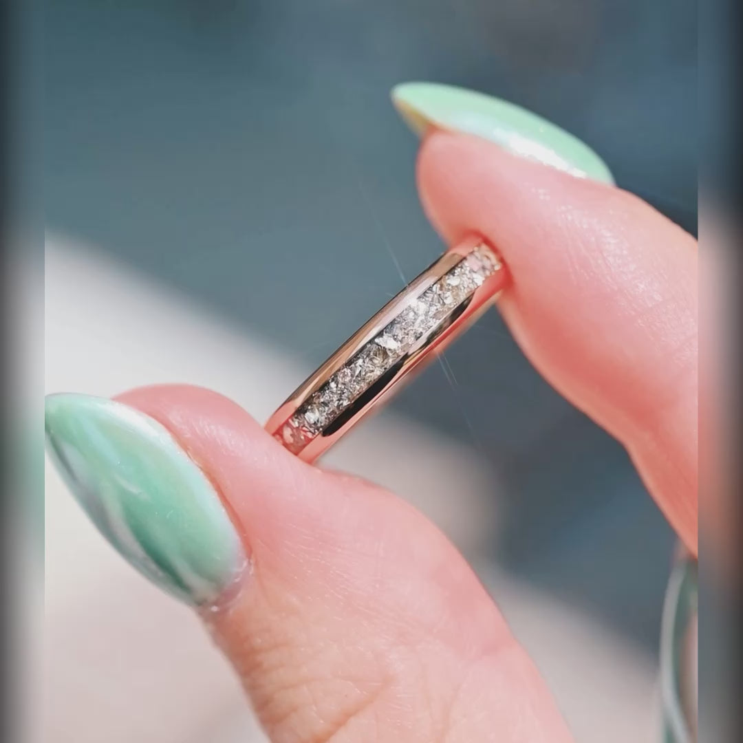 ►This 4mm tungsten band offers a captivating blend of elegance and modern style, making it an ideal choice for any special commitment. The ring features a striking inlay of crushed silver glass stones, adding a touch of sparkle against the polished rose gold plating. Its dome shape and comfort fit design ensure a perfect fit for everyday wear. Whether marking a wedding, symbolizing a promise, or serving as a meaningful anniversary gift, this unique ring stands out with its refined craftsmanship. For an extra personal touch, consider adding custom engraving to create a truly memorable keepsake.