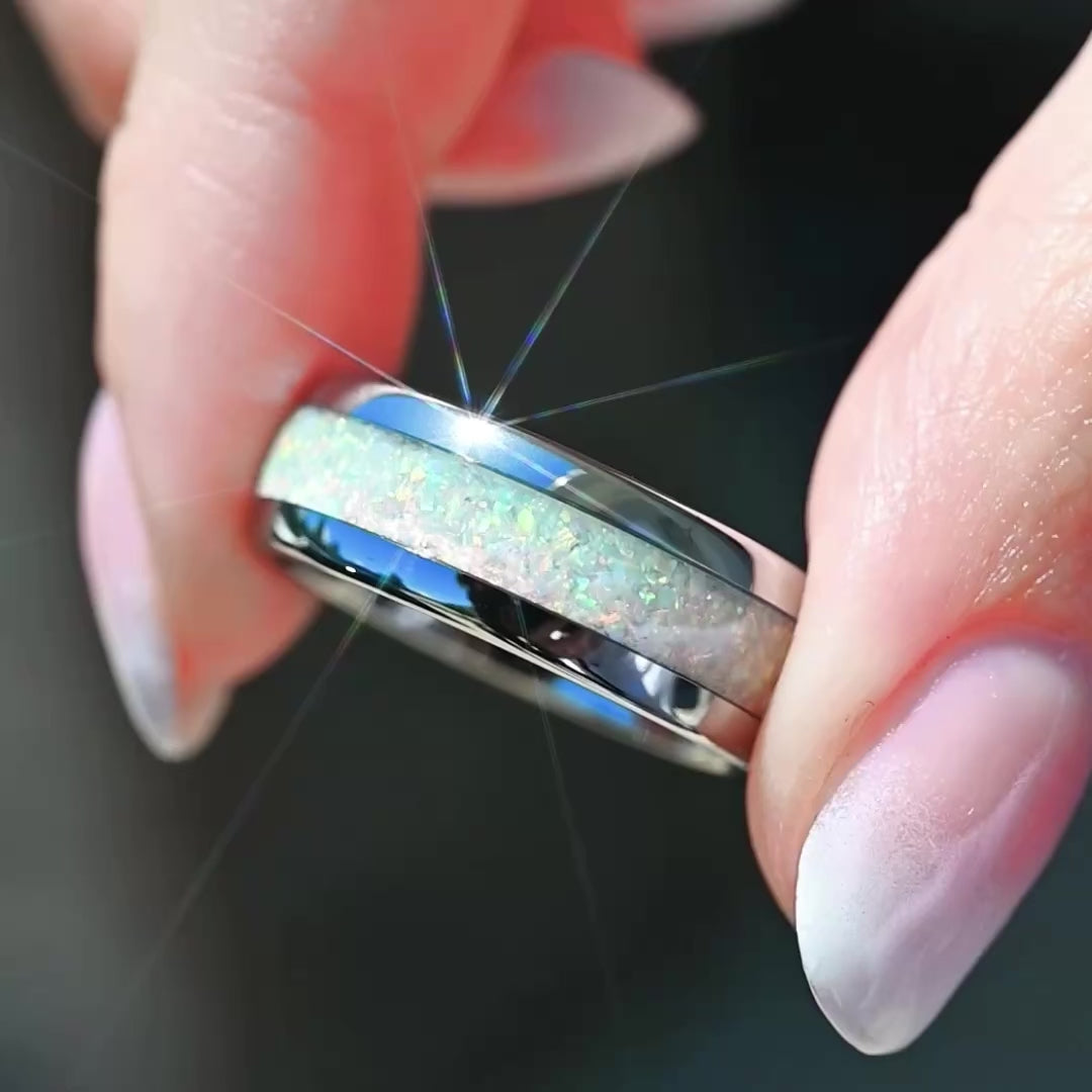 ►Material: Tungsten Carbide and Crushed Opal Inlay