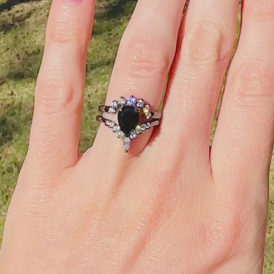 Black Onyx Modern Women Engagement Ring Set, 925 Sterling Silver Ring, Womens Wedding Ring Set, Unique Engagement Ring Set