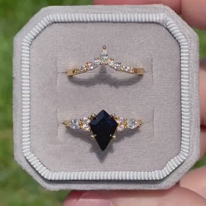 ►This exquisite Black Onyx ring set, featuring a kite-cut onyx set in yellow gold vermeil, makes a stunning choice for those seeking a wedding ring or a meaningful promise ring. Ideal as an anniversary gift or a birthday surprise for her, this elegant piece offers optional engraving to personalize your special moments.