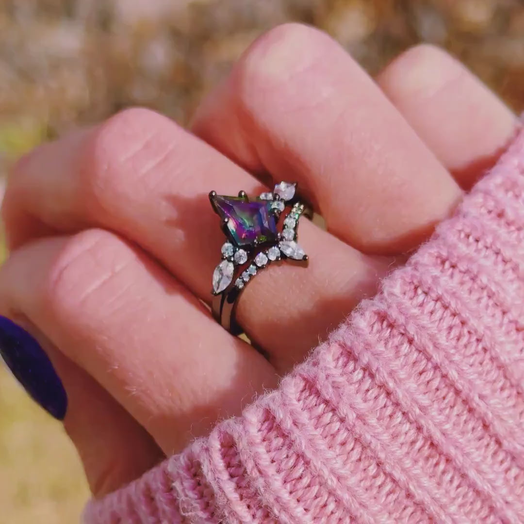 Cass Supernova Black Mystic Topaz Galaxy Ring, Alternative Wedding Ring, Unique Ring for Her, Engagement Ring, Woman Promise Ring, Engraving