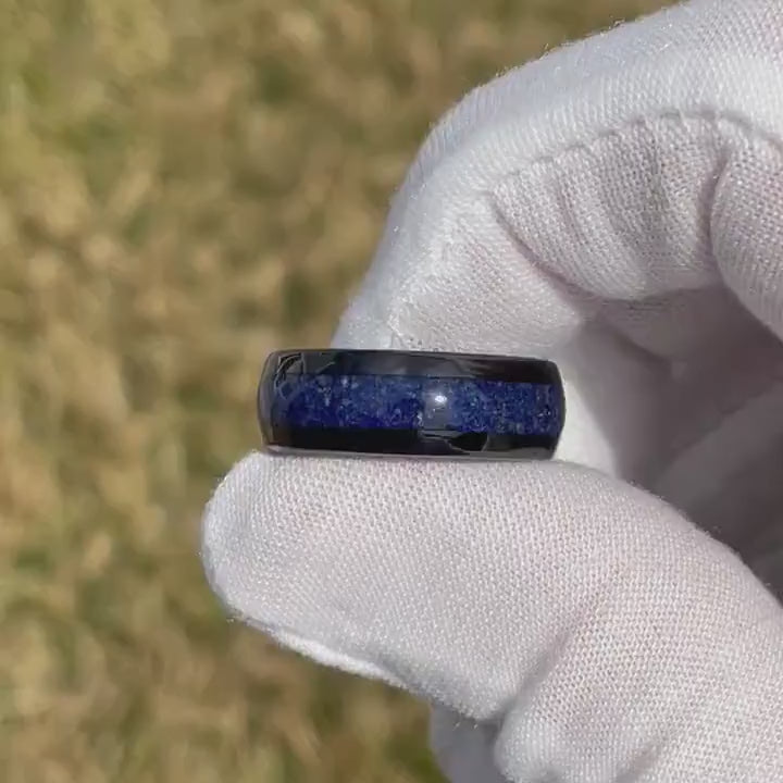 Celestial Blue Lapis Lazuli Ring, 8mm Black Tungsten Ring, Men Wedding Band, Polished, Dome, Comfort Fit, Unique Ring, Gift for Him