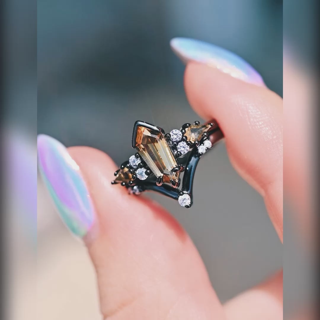 Citrine Engagement Ring Coffin Kite, Black Alternative Wedding Ring, Woman 925 Sterling Silver, Unique Promise Ring, Citrine Ring, Engraving