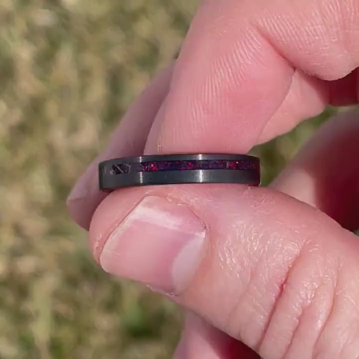 ►Material: Tungsten Carbide and Crushed Black Fire Opal Inlay