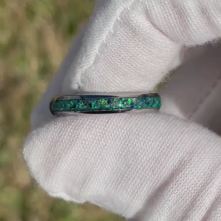 ►Material: Tungsten Carbide and Crushed Black Emerald Opal Inlay