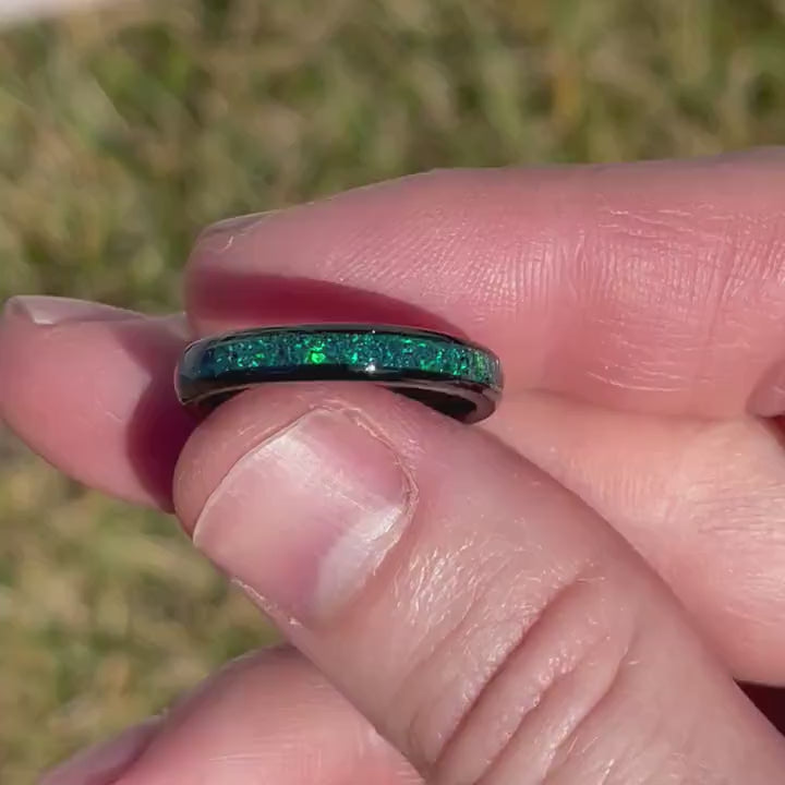 ►Material: Tungsten Carbide and Crushed Black Emerald Opal Inlay