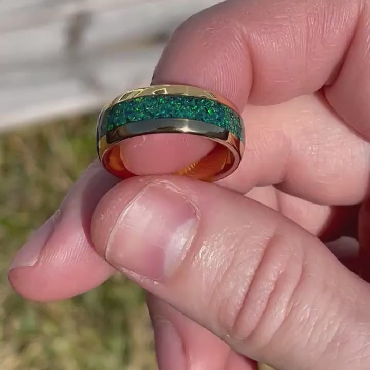 ►Material: Tungsten Carbide and Crushed Black Emerald Opal Inlay