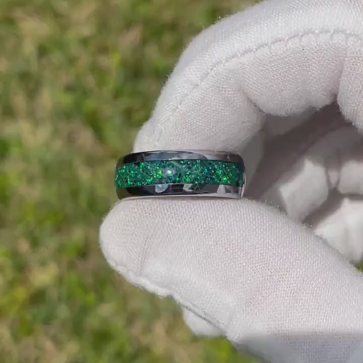 ►Material: Tungsten Carbide and Crushed Black Emerald Opal Inlay
