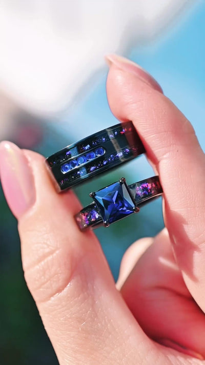 Enla Sapphire & Orion Nebula Ring™ Set | Matching Space Inspired Wedding Band Set for Couples