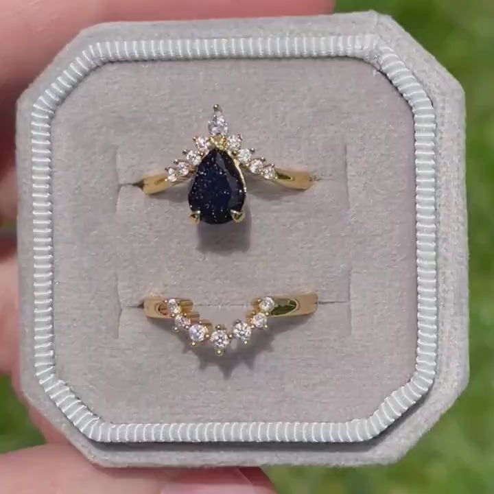Great Rift Nebula Gold Sandstone Ring, 925 Sterling Silver Ring, ACOTAR Ring, Womens Wedding Ring Set, Alternative Engagement Ring Set