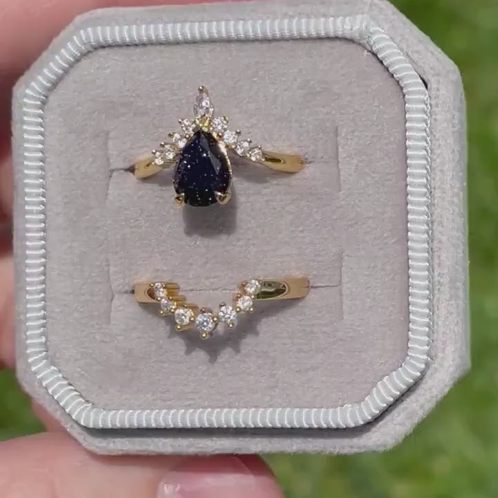 ►Inspired by the cosmos, the Great Rift Nebula ring set features Gold Plated Tungsten and 925 Silver bands, highlighted with shimmering Blue Sandstone. This Space Couples Ring set is an extraordinary choice for celebrating your love, whether it serves as a wedding ring, a meaningful promise ring, or a cherished anniversary gift. Make it uniquely yours with custom engraving, creating a lasting symbol of your shared journey.