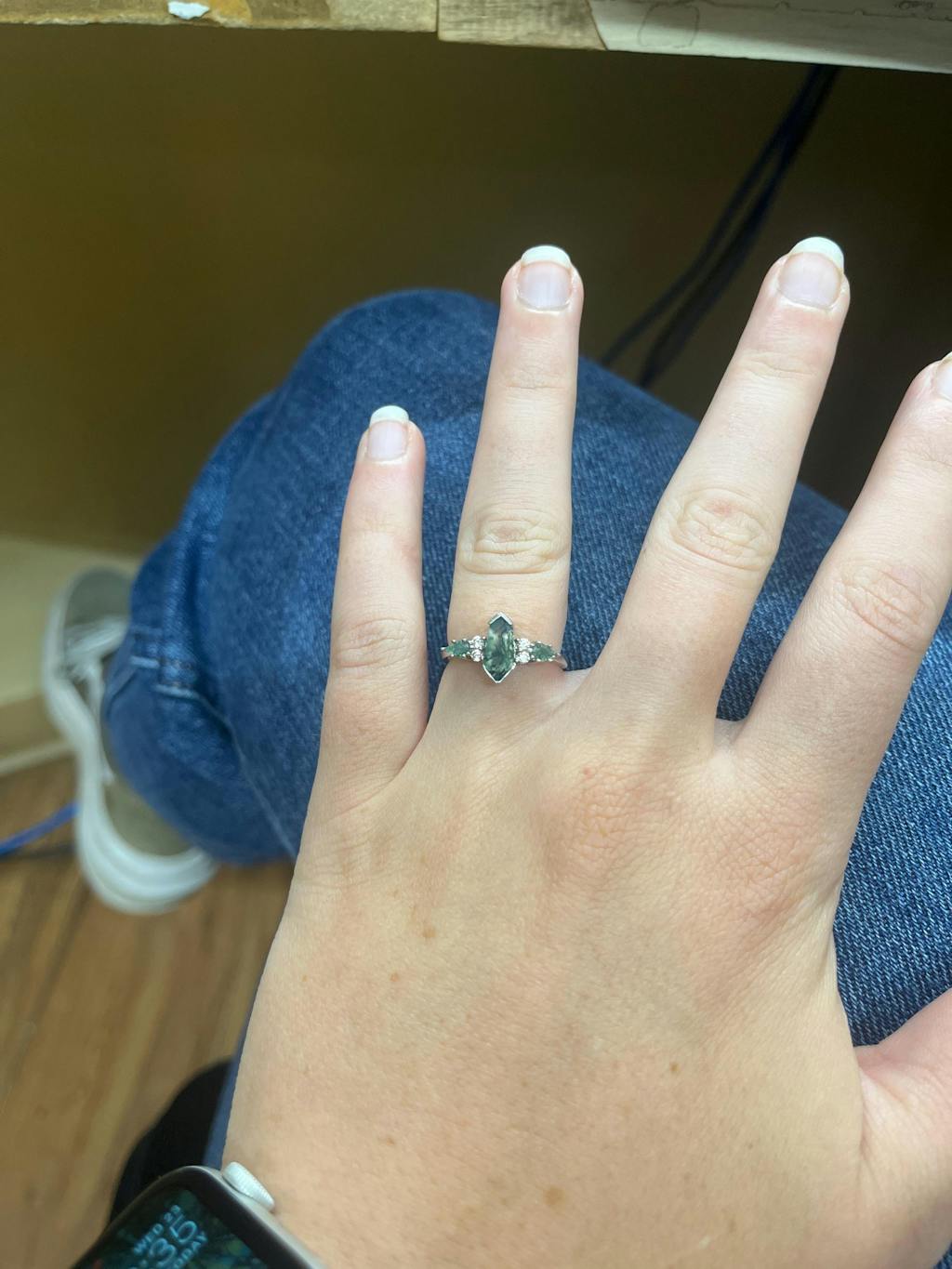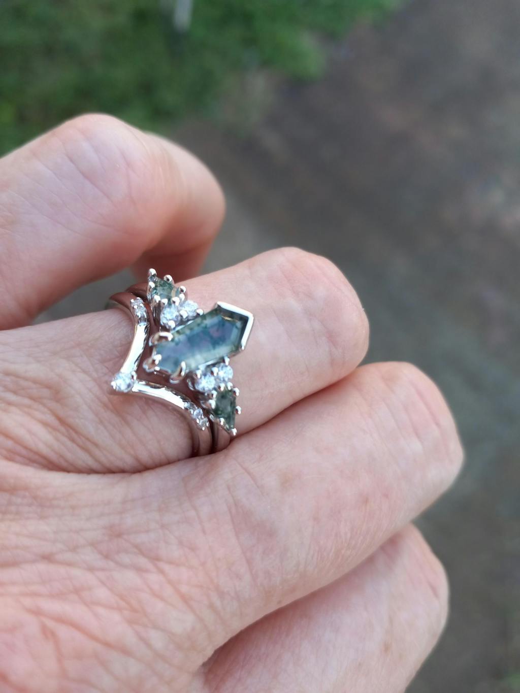 Green Moss Agate Ring Set, Alternative Engagement Ring, Kite Coffin, 925 Sterling Silver, Nature Ring, Promise Ring, Unique Woman Ring