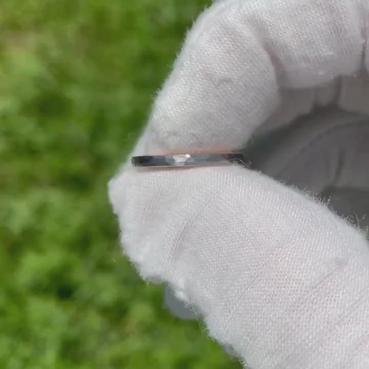 The Hammered Two Tone Wedding Band is a stunning piece of jewelry handmade with precision. Crafted from high-quality Tungsten Carbide, this ring features a unique matte silver exterior with a contrasting rose gold interior. The hammered texture adds a touch of sophistication and elegance to this timeless piece.
