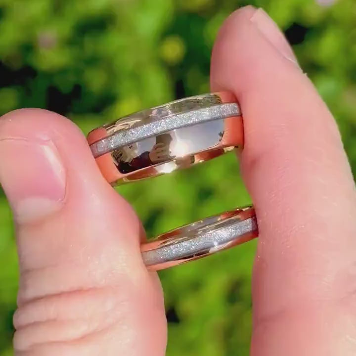 His and Her Moonstone Ring Set, Rose Gold Tungsten Wedding Band, 8mm & 4mm Galaxy Ring Set, Promise Ring, Matching Couples Ring, Engraving