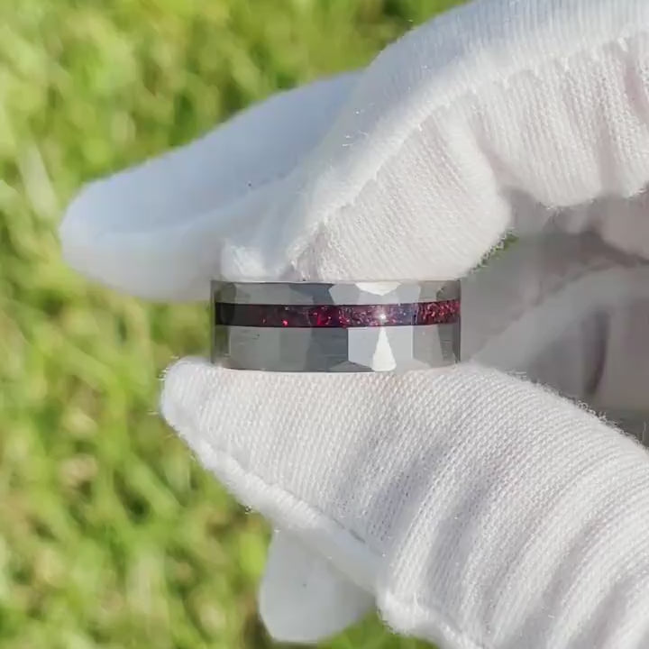 ►Material: Tungsten Carbide and Crushed Black Fire Opal Inlay