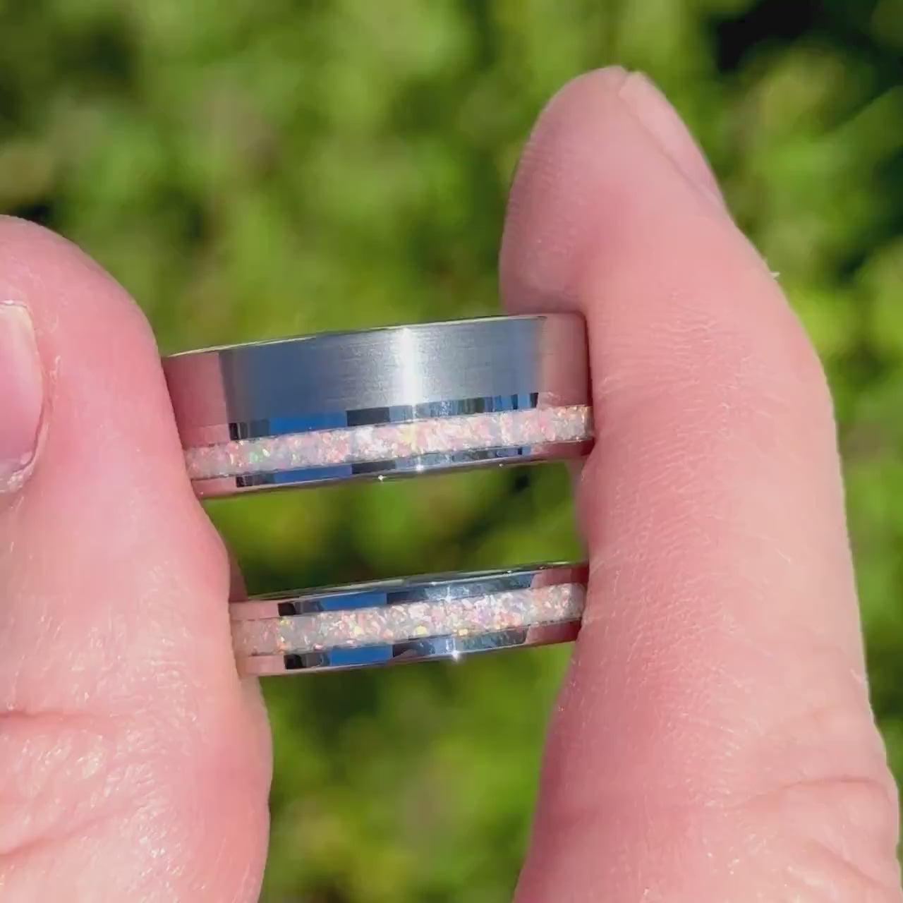 ►Material: Tungsten Carbide and Crushed White Fire Opal Inlay