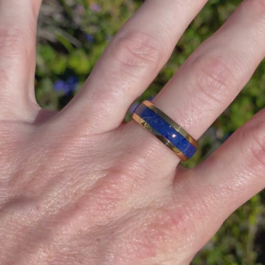 Lapis Lazuli Ring Gold Wedding Band, 8mm Man Tungsten Ring, Blue and Gold Promise Ring, Man Engagement Ring, Unique Band, Ring Engraving