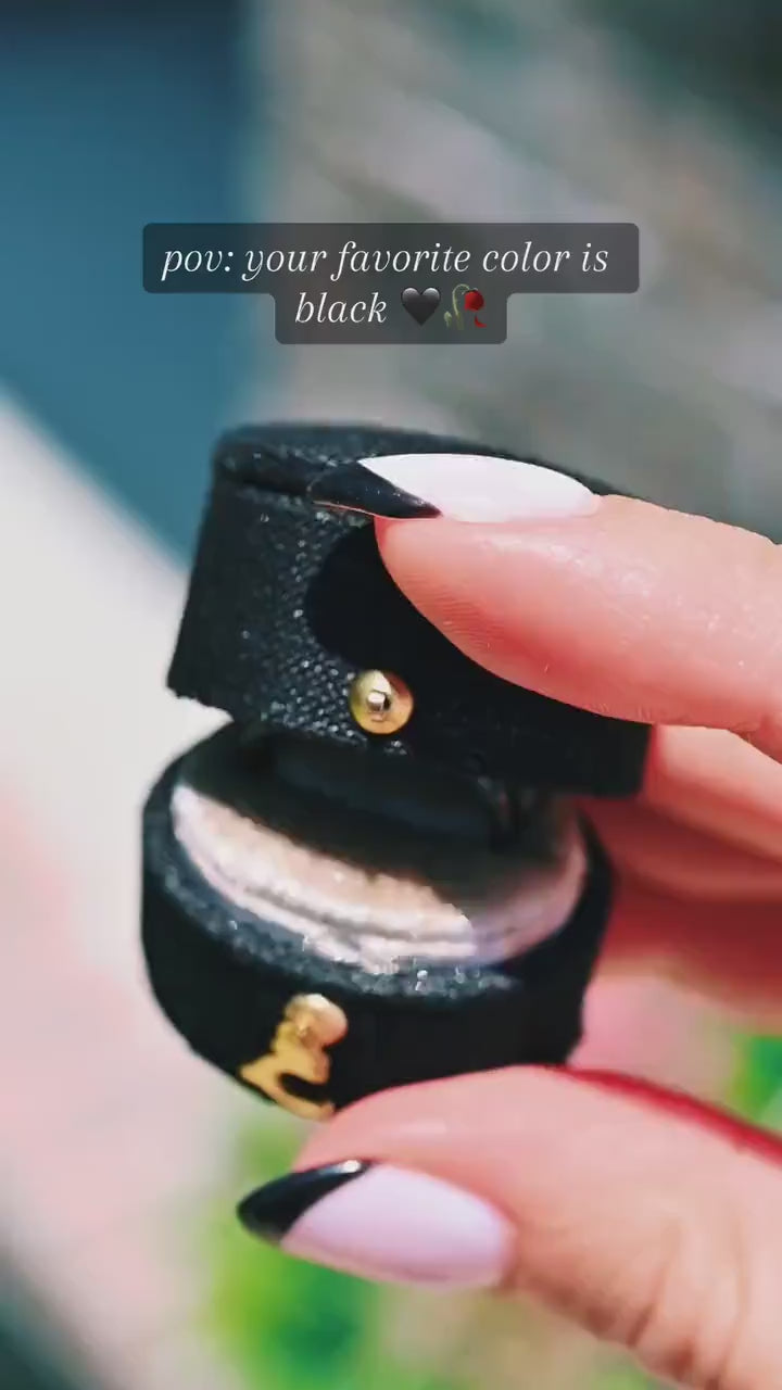 ►The Lumiere Black Fire Opal Ring captivates with its striking shield-cut black opal accented by fiery red tones, set in a unique design perfect for any occasion. This elegant piece makes a stunning wedding ring, a heartfelt promise ring, or an unforgettable anniversary gift. Personalize it with engraving to create a one-of-a-kind symbol of love and commitment that reflects your unique story.