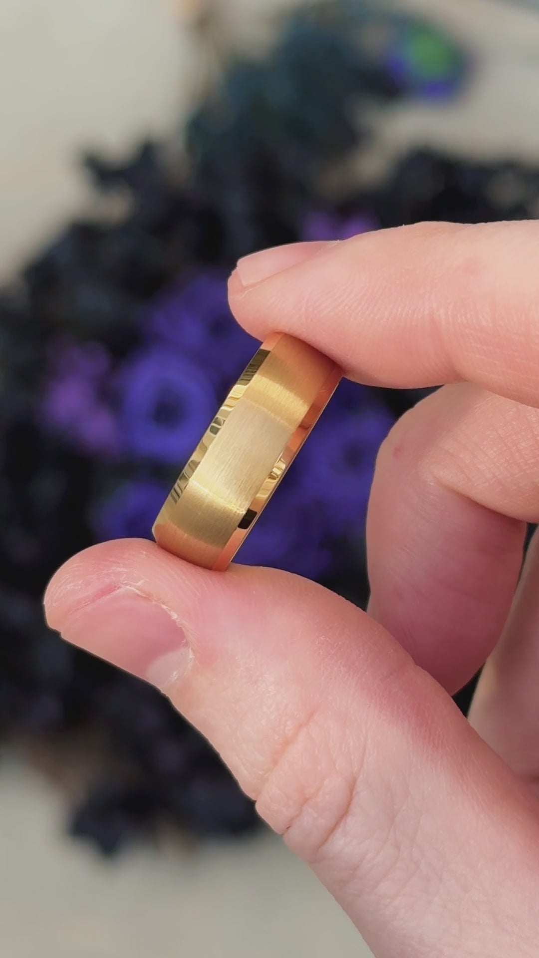 Man Brushed Gold Wedding Band, Gold Tungsten Ring, Bevel Edge, Man Engagement Ring, Matte Dome, 8mm 6mm, Classic Man Ring, Engraving