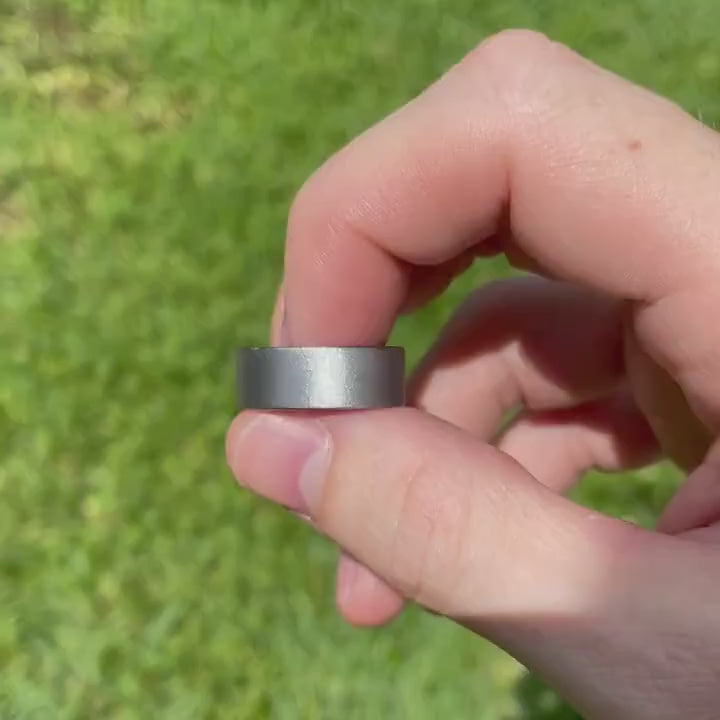 Man Wood Wedding Band, Metal and Wood, Olive Wood, Tungsten Ring, Sandblasted, 8mm Silver Band, Flat, Birthday Anniversary Gift for Him