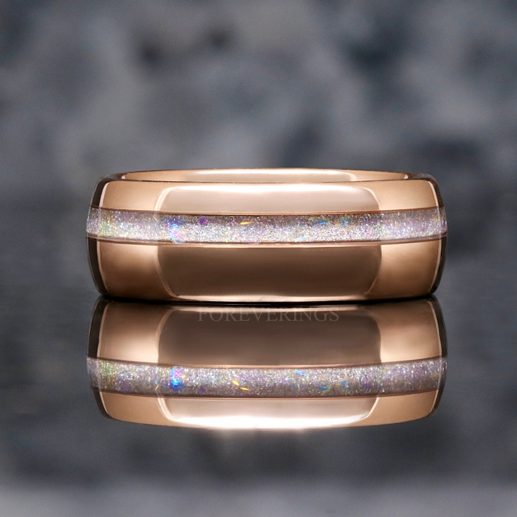 Mens Moonstone Ring, Rose Gold Wedding Band, Man Tungsten Ring, Man Engagement Ring, Nebula Promise Ring for Him, 8mm Galaxy Ring, Engraving