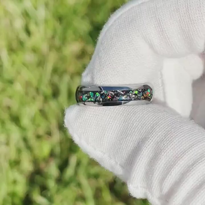 ►Mark your special moments with the Meteorite and Galaxy Opal Ring Set, a stunning choice for couples. These His and Hers Tungsten Bands, come in 6mm and 4mm widths and offers a sleek silver finish with a comfort fit for everyday wear. Whether you're searching for a meaningful wedding ring, a timeless promise ring, or a thoughtful anniversary gift, this set beautifully combines durability and elegance. Personalize it further with custom engraving, making each ring a unique symbol of your lasting bond.