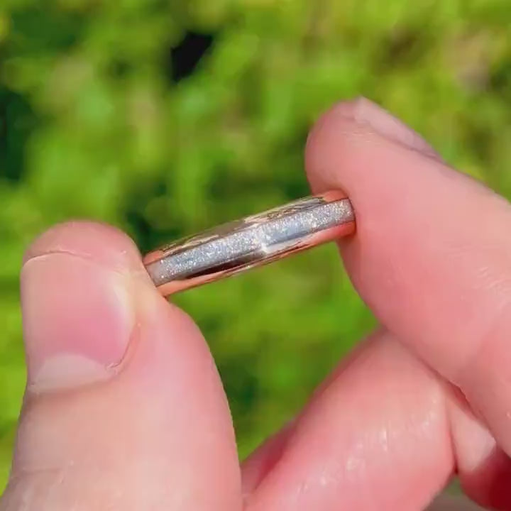 Moonstone Wedding Band, Rose Gold Tungsten Ring, 4mm Nebula Ring, Polished, Dome, Comfort Fit, Unique Ring, Men Women Ring, Engraving