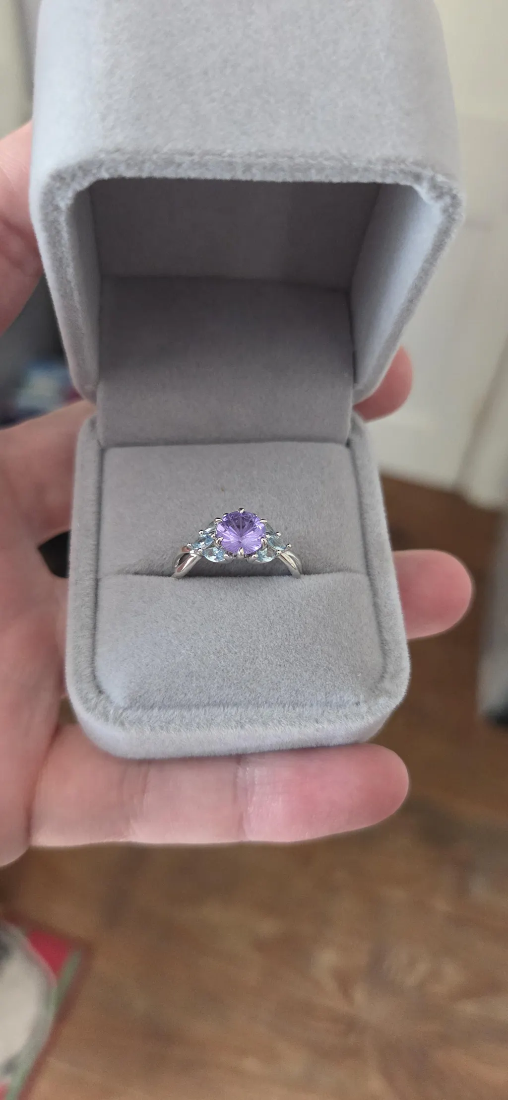 Nesta Amethyst Ring, Unique Engagement Ring, Womens Wedding Ring, Floral Nature, Enchanted Fairy Ring, Nontraditional Aquamarine Leaf Ring