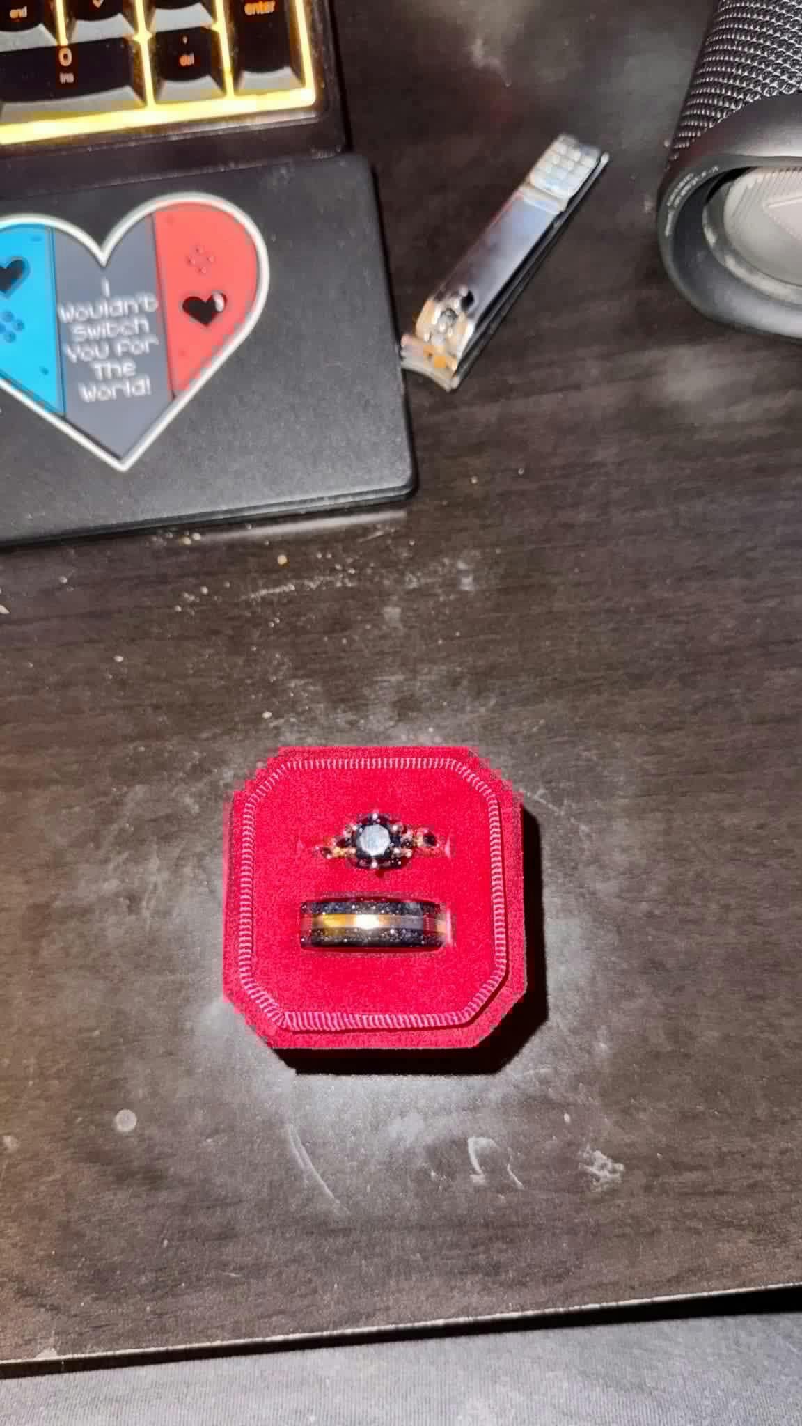 The Nesta Starry Night Engagement Ring Set captures the celestial beauty of the Great Rift Nebula with glittering sandstone, resembling stars in a night sky. Perfect for weddings, engagements, promises, or anniversaries, this matching set is a unique symbol of unity and love.