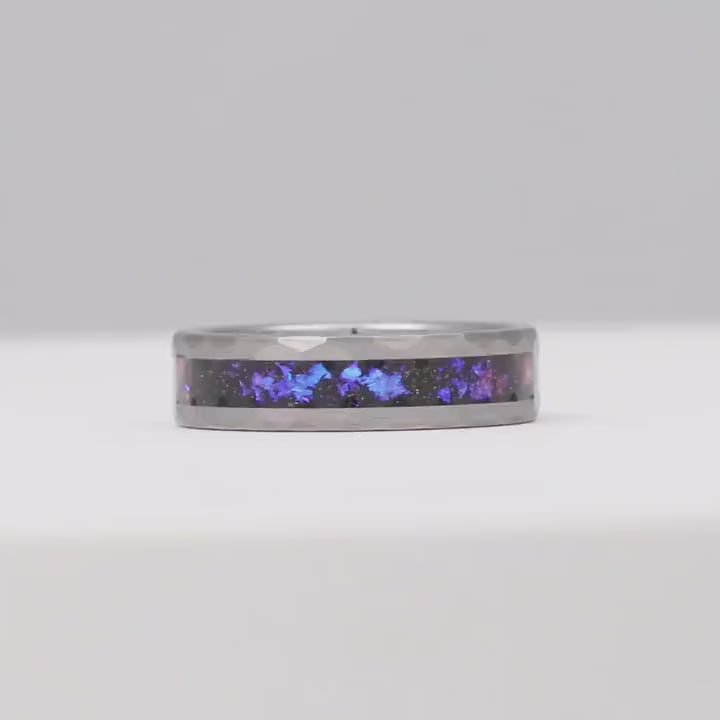 Orion Nebula Ring Hammered Wedding Band, 8mm-6mm Silver Tungsten Ring, Man Wedding Band, Outer Space Ring, Brushed Flat Ring, Engraving