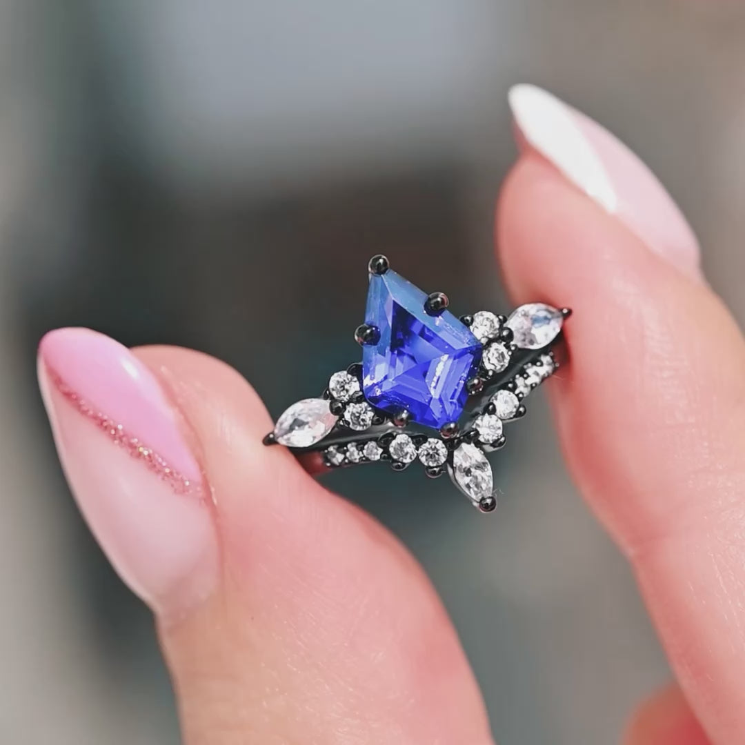 Orion Nebula Ring, Kite Cut Engagement Ring Set, Black Gold Filled Ring, 925 Sterling Silver, Space Wedding Ring, Black Rhodium Finish