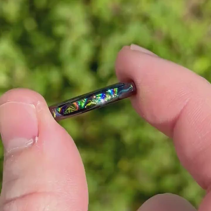 Rhaegal Dragon Ring Tungsten Band, 4mm Black Nebula Ring, Dichrolam, Man Woman Wedding Band, Green Space Ring, Unique Promise Ring, Engraving