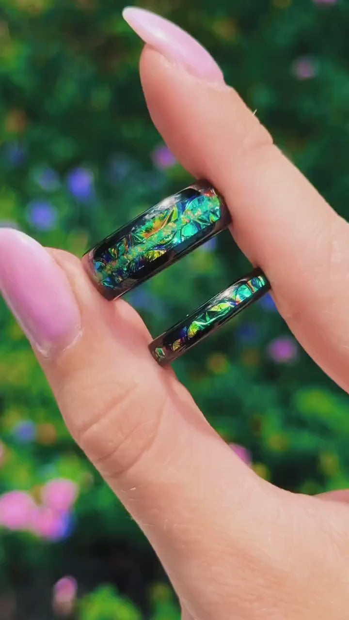 ►Material: Tungsten Carbide, Green Fire Opal, Dichrolam Inlay