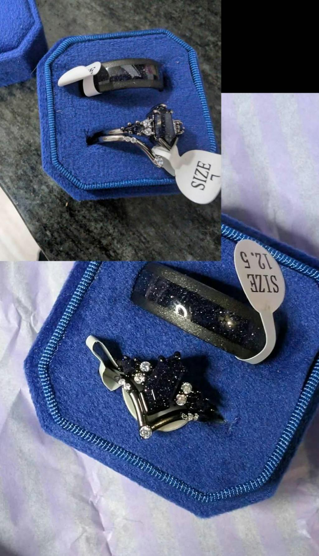 Rift Nebula Ring Set, His Her Starry Night Wedding Band, Personalized, Matching Couple Ring, Sandstone, Black Tungsten, 925 Silver
