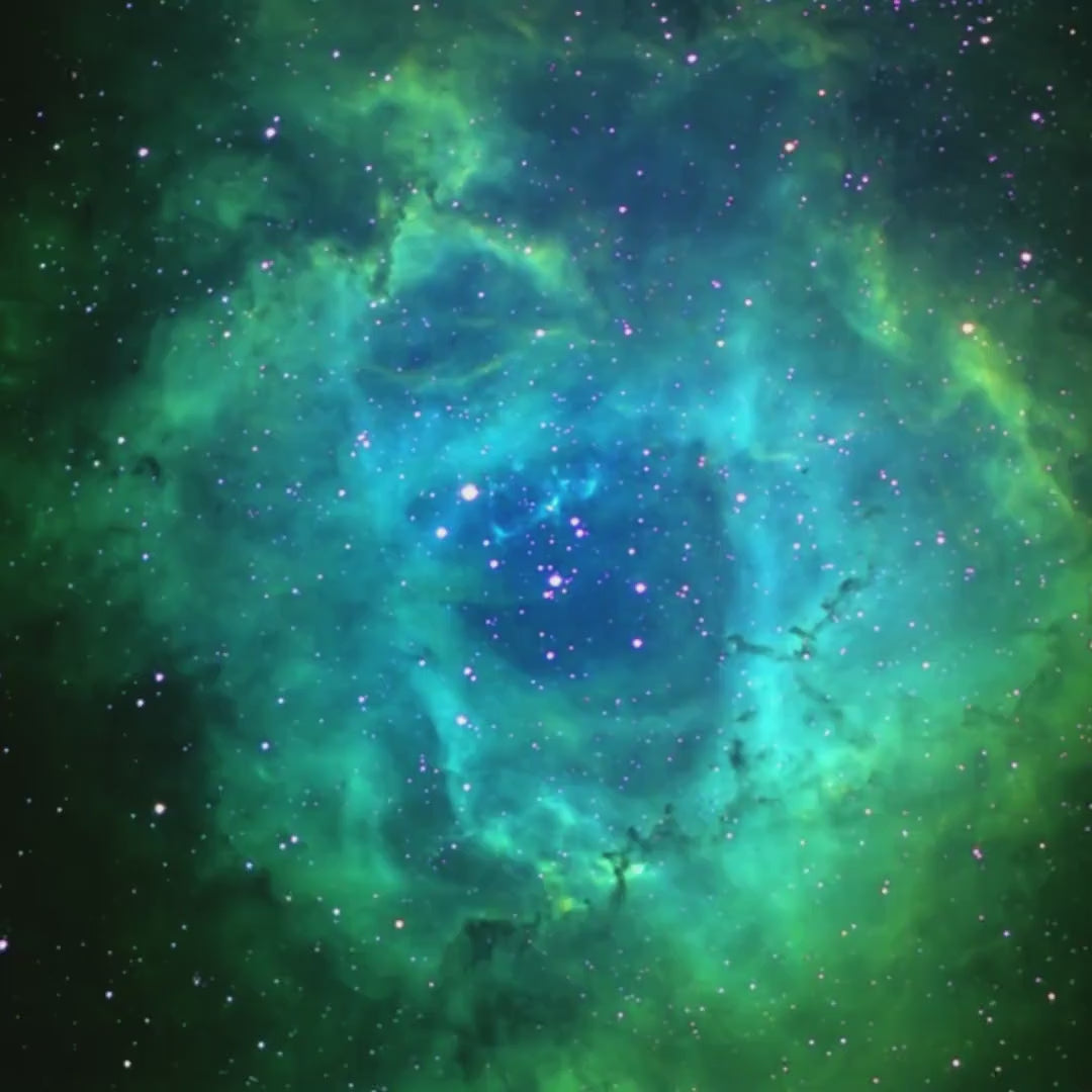 ►This ring is inspired by the beautiful Rosette nebula shown above. The color shifting green-blue inlay resemble gases of the nebula amongst a sea of stars. A beautiful alternative for a wedding band, this ring will stand out amongst the crowd of standard wedding bands.