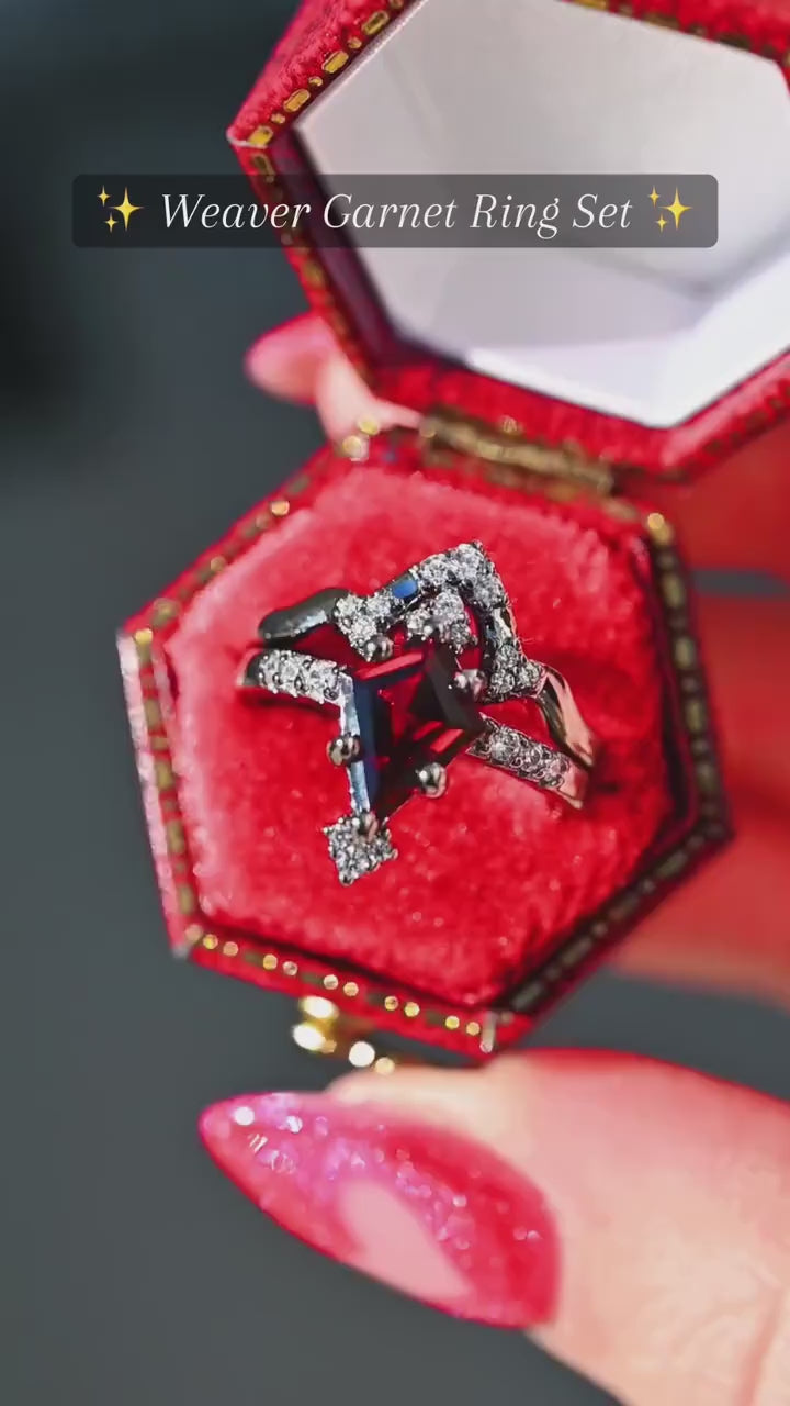 Weaver Natural Garnet Wedding Ring, Unique Engagement Ring, Kite Cut Cluster, Red and Black Ring, Goth Alternative Ring, Dark Aesthetic